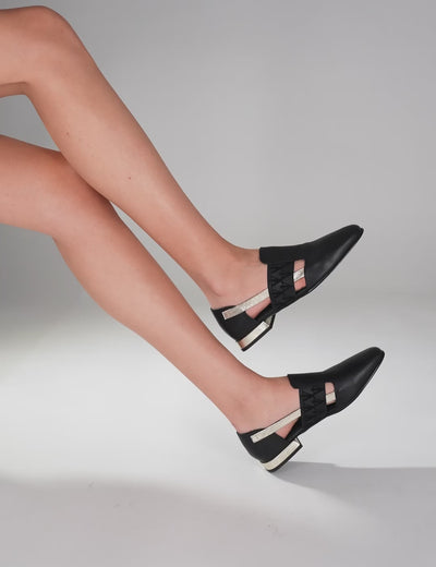 - Schwarzer Floater-Leder-Loafer für Damen